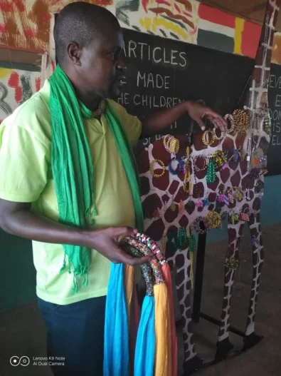 Eén van de “skills” die de kinderen leren is het maken van sieraden en tassen. Op de bijgevoegde foto’s met onderschrift van de hoofddocent is te zien hoeveel interesse daarvoor is van de lokale bevolking. Zo komen de gehandicapte kinderen dichterbij de maatschappij te staan en vergroot het de acceptatie.